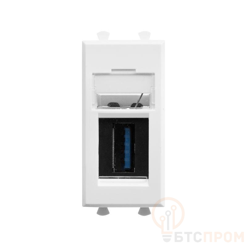 USB 3.0 розетка. Назначение: для монтажа в систему пластиковых коробов "In-liner Front" и систему алюминиевых кабельных коробов и колонн "Aero", лючки и башенки BUS при помощи рамок-суппортов и каркасов "Avanti" (код 4400912 и т.д.). Используется в качестве информационной розетки для передачи сигнала (подключение проекторов, мониторов и др.). 1 модуль. Цвет: "Белое облако". Производитель оставляет за собой право вносить во внешний вид изделия изменения, которые не влияют на его функционал, безопасность и надежность.