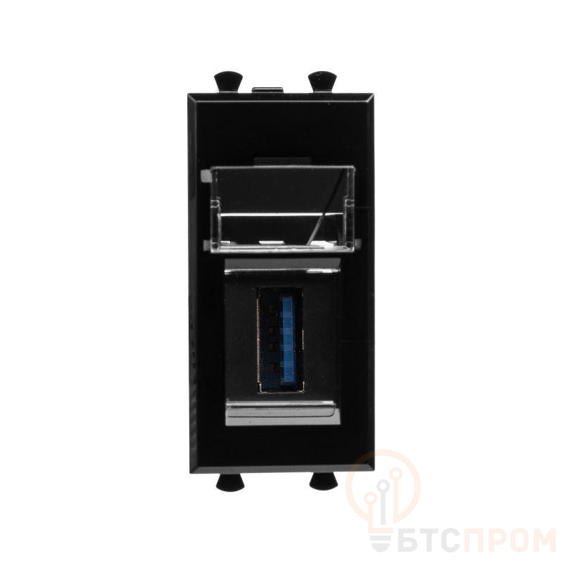 USB 3.0 розетка. Назначение: для монтажа в систему кабельных коробов "In-liner Front" и систему алюминиевых кабельных коробов и колонн "Aero", лючки и башенки BUS, при помощи рамок-суппортов и каркасов "Avanti" (код 4400912 и т.д.). Используется в качестве информационной розетки для передачи сигнала (подключение проекторов, мониторов и др.). 1 модуль. Цвет: "Черный квадрат". Производитель оставляет за собой право вносить во внешний вид изделия изменения, которые не влияют на его функционал, безопасность и надежность.