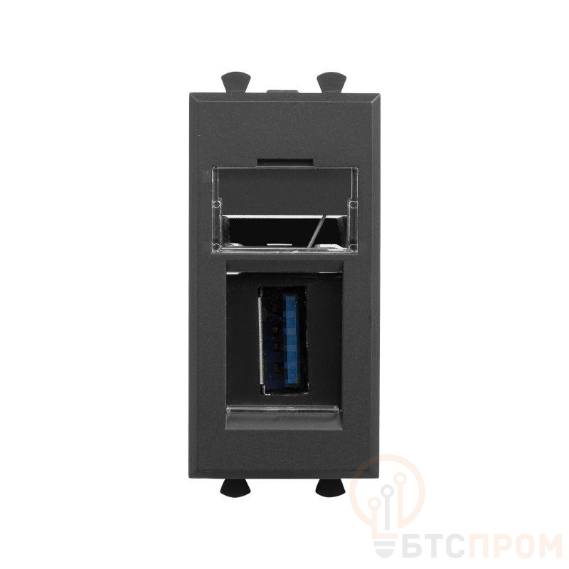 USB 3.0 розетка. Назначение: для монтажа в систему пластиковых кабельных коробов "In-liner Front" и систему алюминиевых кабельных коробов и колонн "Aero", башенок BUS и наполные лючки при помощи рамок-суппортов и каркасов "Avanti" (код 4400912 и т.д.). Используется в качестве информационной розетки для передачи сигнала (подключение проекторов, мониторов и др.). 1 модуль. Цвет: "Черный матовый". Производитель оставляет за собой право вносить во внешний вид изделия изменения, которые не влияют на его функционал, безопасность и надежность.