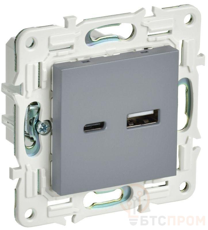 –Розетка USB A+C 18Вт SKANDY SK-R13Gr сер. IEK SK-U22-018-K03