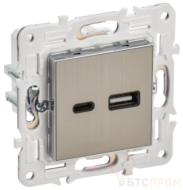 Розетка USB A+C 3.1А SKANDY SK-R14N никель IEK SK-U22-D31-K50 фото в каталоге от BTSprom.by