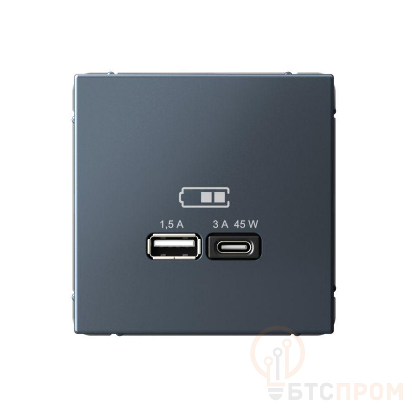 Розетка Systeme Electric серии ArtGallery в цвете грифель двойная USB с разъемами типа A+C высокоскоростная. Уникальный цвет, аналогов которому нет на рынке, соответствует современным трендам в дизайне интерьера. Самая современная USB-зарядка с двумя разъемами позволяет заряжать как стандартные мобильные устройства через разъем типа А, так и новейшие устройства с разъемом типа С. Мощность: тип-A – 7.5 Вт, тип-С 45Вт. Поддерживает современные протоколы быстрой зарядки QC, PD, последних версий. Лучший промышленный дизайн (по итогам премии Минпромторг 2023).