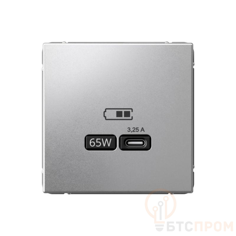 Розетка Systeme Electric серии ArtGallery в цвете алюминий USB с разъемом типа C высокоскоростная. Классическое цветовое решение станет изюминкой любого интерьера. Самая современная USB-зарядка позволяет заряжать ноутбук, а также смартфоны последнего поколения, которые поддерживают функцию быстрой зарядки. Мощность: тип-С 65Вт. Поддерживает современные протоколы быстрой зарядки QC, PD, последних версий. Лицевые детали из качественного ABS-пластика, устойчивого к царапинам и УФ-излучению. Лучший промышленный дизайн (по итогам премии Минпромторг 2023).