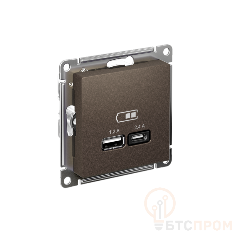 Розетка Systeme Electric (ранее Schneider Electric) серии AtlasDesign в цвете мокко двойная USB с разъемами типа A+C. Лицевые детали из качественного ABS-пластика, устойчивого к царапинам и УФ-излучению. Самая современная USB-зарядка с двумя разъемами позволяет заряжать как стандартные мобильные устройства через разъем типа А, так и новейшие устройства, в том числе ноутбуки, с разъемом типа С.