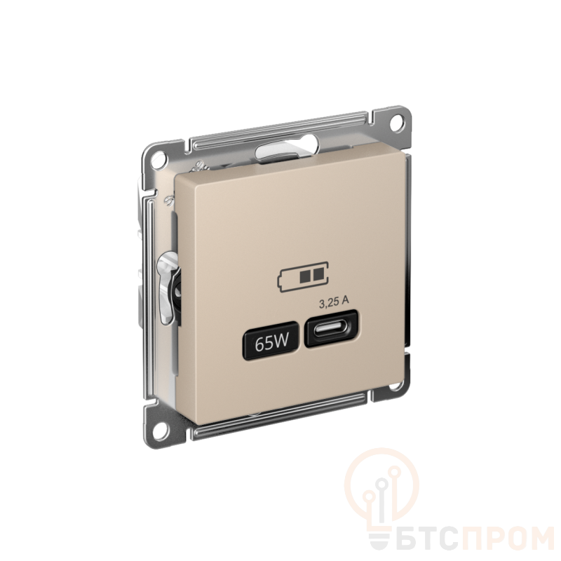 Розетка Systeme Electric (ранее Schneider Electric) серии AtlasDesign в цвете песочный USB с разъемом типа C высокоскоростная. Самая современная USB-зарядка позволяет заряжать ноутбук, а также смартфоны последнего поколения, которые поддерживают функцию быстрой зарядки. Мощность: тип-С - 65Вт. Поддерживает современные протоколы быстрой зарядки QC, PD, последних версий. Лицевые детали из качественного ABS-пластика, устойчивого к царапинам и УФ-излучению.