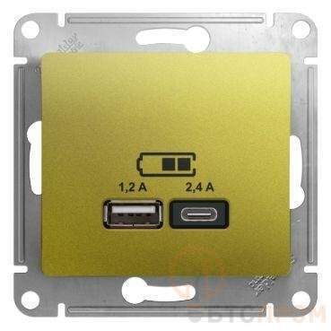Розетка Glossa (цвет фисташковый) двойная USB с разъемами типа A+C. - Выполнена из материала PС+ASA, стойкого к УФ-излучению и появлению царапин. - Самая современная USB-зарядка с двумя разъемами позволяет заряжать как стандартные мобильные устройства через разъем типа А, так и новейшии устройства, в том числе ноутбуки, с разъемом типа С.