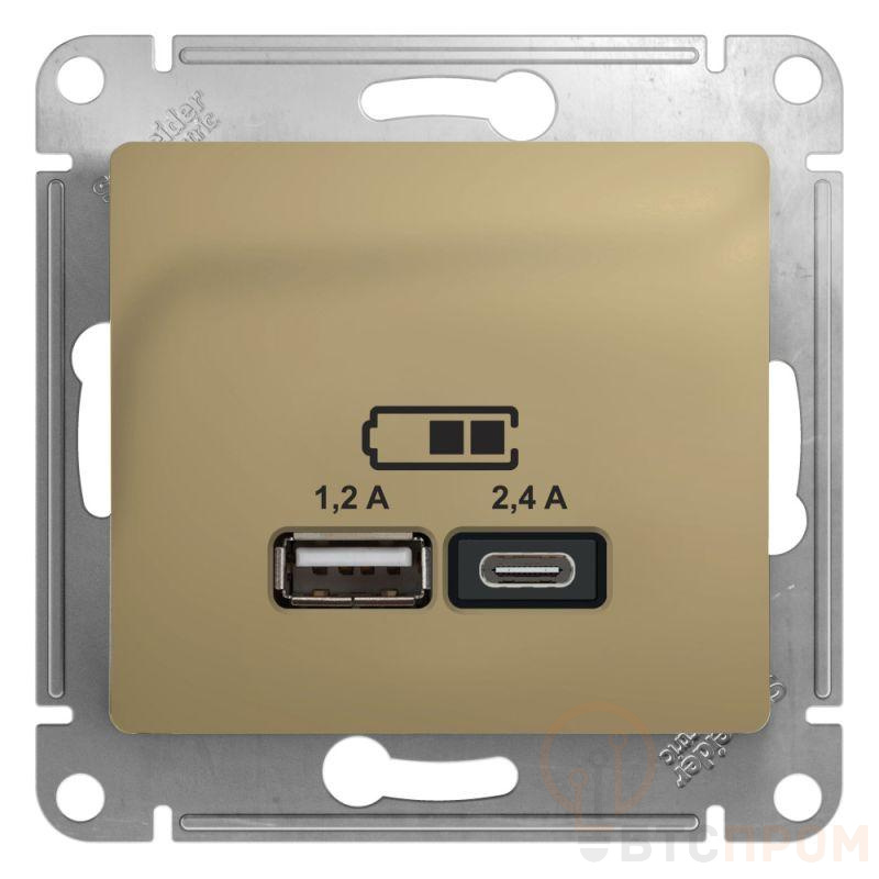 Розетка Systeme Electric (ранее Schneider Electric) серии Glossa (цвет титан) двойная USB с разъемами типа A+C подходит для сетей 2 В, на ток 2,4 А. - Выполнена из материала PС+ASA, стойкого к УФ-излучению и появлению царапин. - Самая современная USB-зарядка с двумя разъемами позволяет заряжать как стандартные мобильные устройства через разъем типа А, так и новейшии устройства, в том числе ноутбуки, с разъемом типа С.