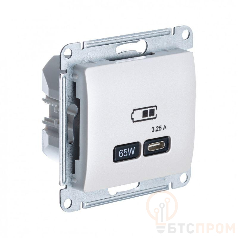 Розетка Systeme Electric (ранее Schneider Electric) серии Glossa (цвет перламутр) USB с разъемом типа C высокоскоростная. - Самая современная USB-зарядка позволяет заряжать ноутбук, а также смартфоны последнего поколения, которые поддерживают функцию быстрой зарядки. - Мощность: тип-С - 65Вт. - Поддерживает современные протоколы быстрой зарядки QC, PD, последних версий. - Лицевые детали из качественного ABS-пластика, устойчивого к царапинам и УФ-излучению.