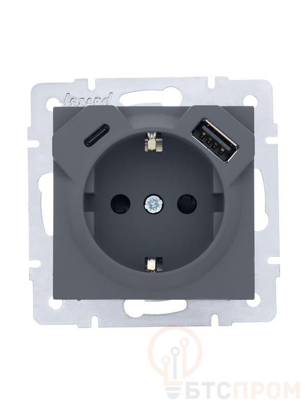 Розетка Vesna с заземл. TC+USB разъем графит LEZARD 742-3488-181TC фото в каталоге от BTSprom.by