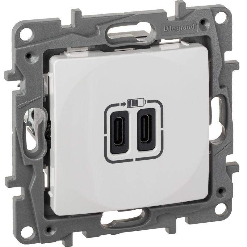 –Устройство зарядное Etika с 2-мя USB разъемами C и C 240В/5В 3000мА бел. IEK 672235