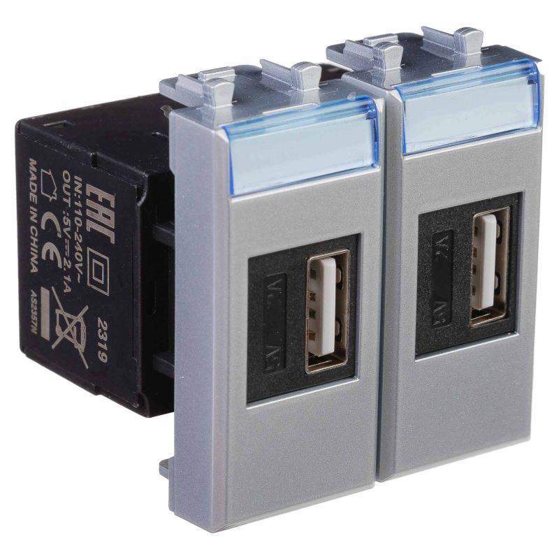 USB зарядное устройство модульное. Назначение: для монтажа в систему кабельных коробов "In-liner Front" и систему организации рабочих мест "Sotto" (алюминиевые кабель-каналы, колонны, башенки и лючки) при помощи рамок-суппортов и каркасов "Avanti" (код 4400912 и т.д.); используется для подзарядки электронных гаджетов. Характеристики: винтовые зажимы; номинальное напряжение – 220 В; частота – 50–60 Гц; напряжение на выходе – 5 В; фиксация в подрозеточные коробки глубиной не менее 45 мм при помощи каркаса с лапками (код 4400802) и саморезов. Кол-во модулей: 2. Цвет: "Закаленная сталь". Производитель оставляет за собой право вносить во внешний вид изделия изменения, которые не влияют на его функционал, безопасность и надежность.
