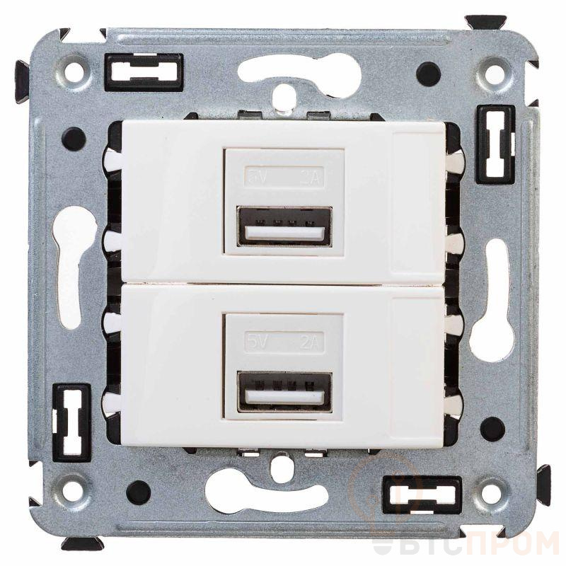 USB зарядное устройство в стену. Назначение: для монтажа в подрозеточные коробки глубиной не менее 45 мм (код 59301); используется для подзарядки электронных гаджетов. Характеристики: винтовые зажимы; номинальное напряжение – 220 В; частота – 50–60 Гц; напряжение на выходе – 5 В; номинальный ток на каждом выходе - 2,1 А. Кол-во модулей: 2. Цвет: "Белое облако". Производитель оставляет за собой право вносить во внешний вид изделия изменения, которые не влияют на его функционал, безопасность и надежность.