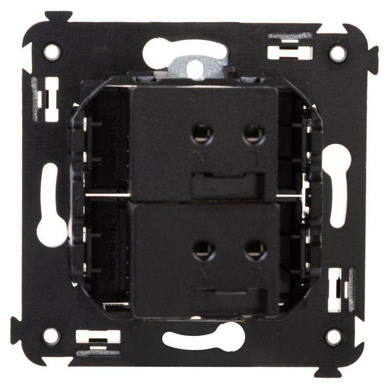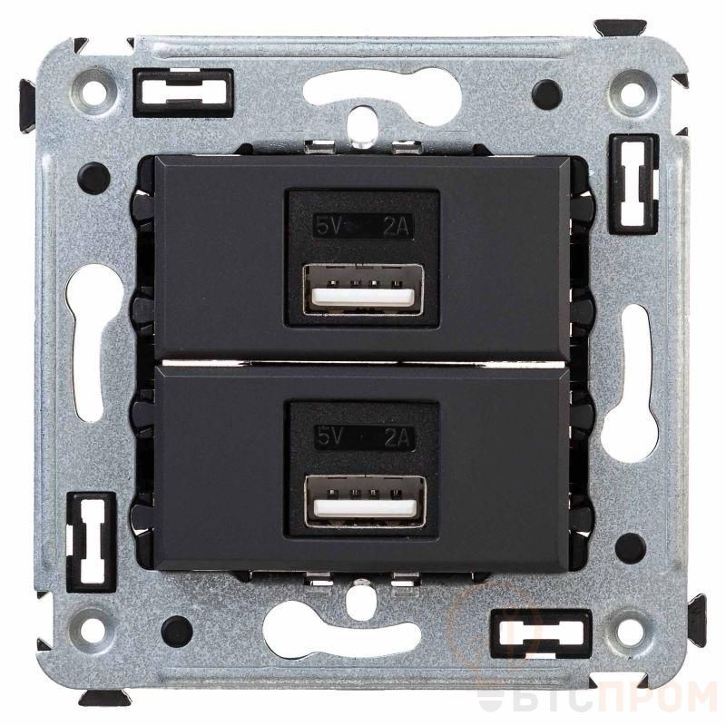 USB зарядное устройство в стену. Назначение: Назначение: для монтажа в подрозеточные коробки глубиной не менее 45 мм (код 59301); используется для подзарядки электронных гаджетов. Характеристики: винтовые зажимы; номинальное напряжение – 220 В; частота – 50–60 Гц; напряжение на выходе – 5 В; номинальный ток на каждом выходе - 2,1 А. Кол-во модулей: 2. Цвет: Черный матовый". Производитель оставляет за собой право вносить во внешний вид изделия изменения, которые не влияют на его функционал, безопасность и надежность.