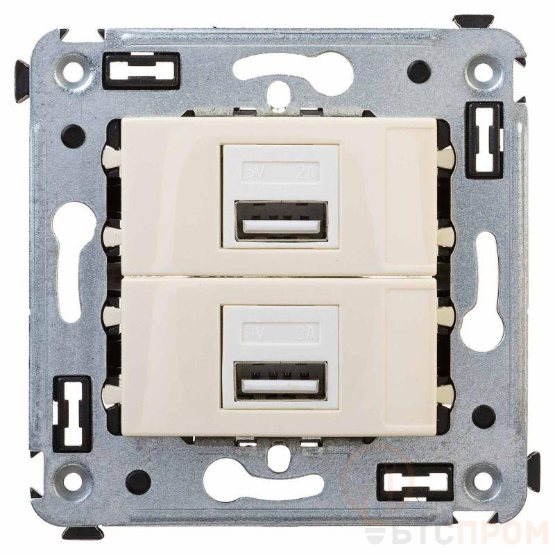 USB зарядное устройство в стену. Назначение: для монтажа в подрозеточные коробки глубиной не менее 45 мм (код 59301); используется для подзарядки электронных гаджетов. Характеристики: винтовые зажимы; номинальное напряжение – 220 В; частота – 50–60 Гц; напряжение на выходе – 5 В; номинальный ток на каждом выходе - 2,1 А. Кол-во модулей: 2. Цвет: "Ванильная дымка". Производитель оставляет за собой право вносить во внешний вид изделия изменения, которые не влияют на его функционал, безопасность и надежность.