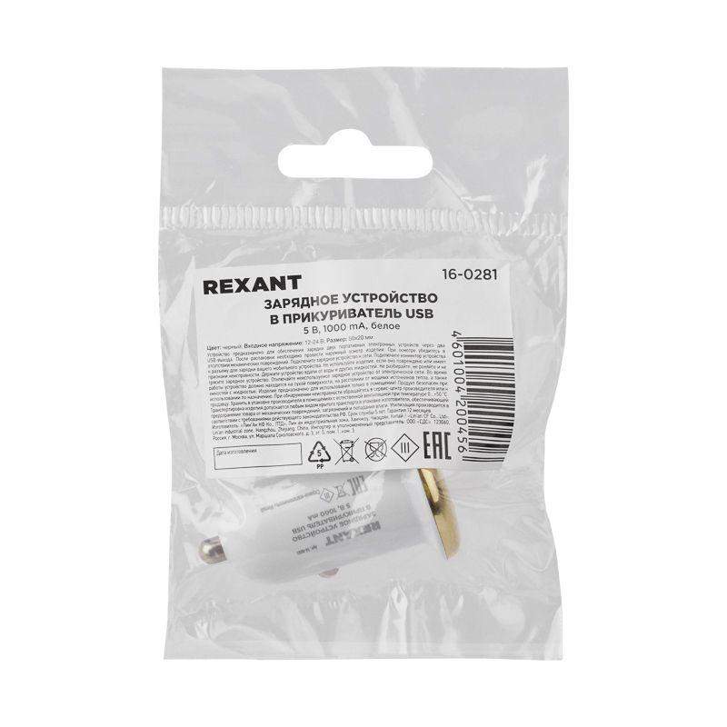Устройство зарядное в прикуриватель USB 5В 1000мA.ч бел. Rexant 16-0281 фото в каталоге от BTSprom.by