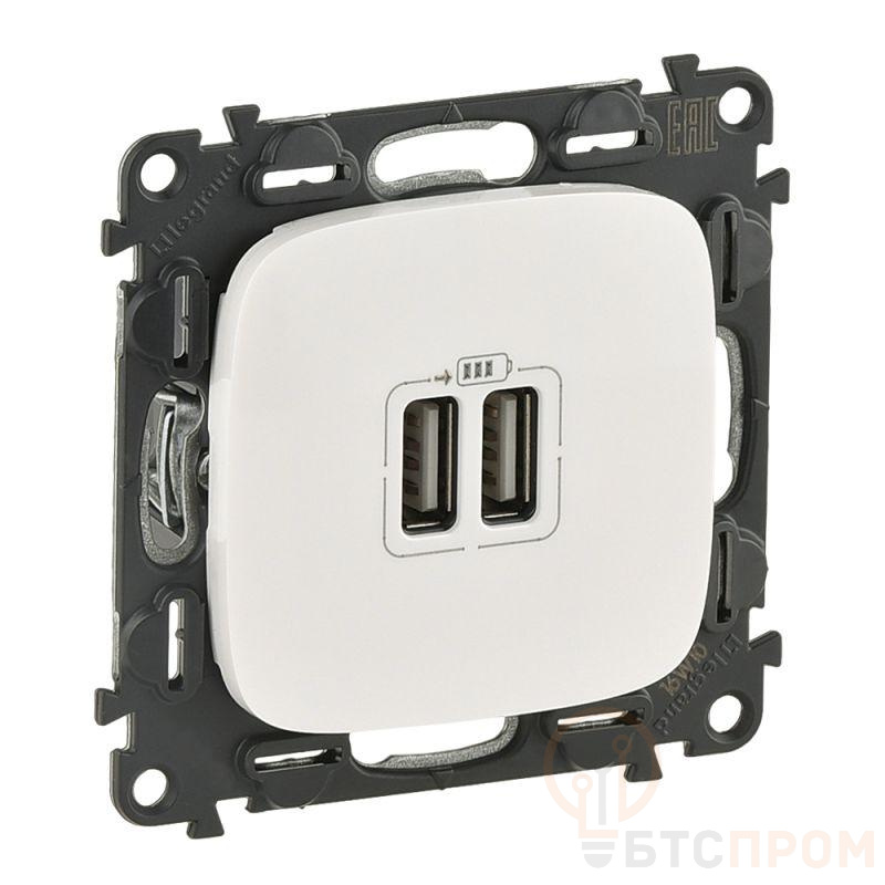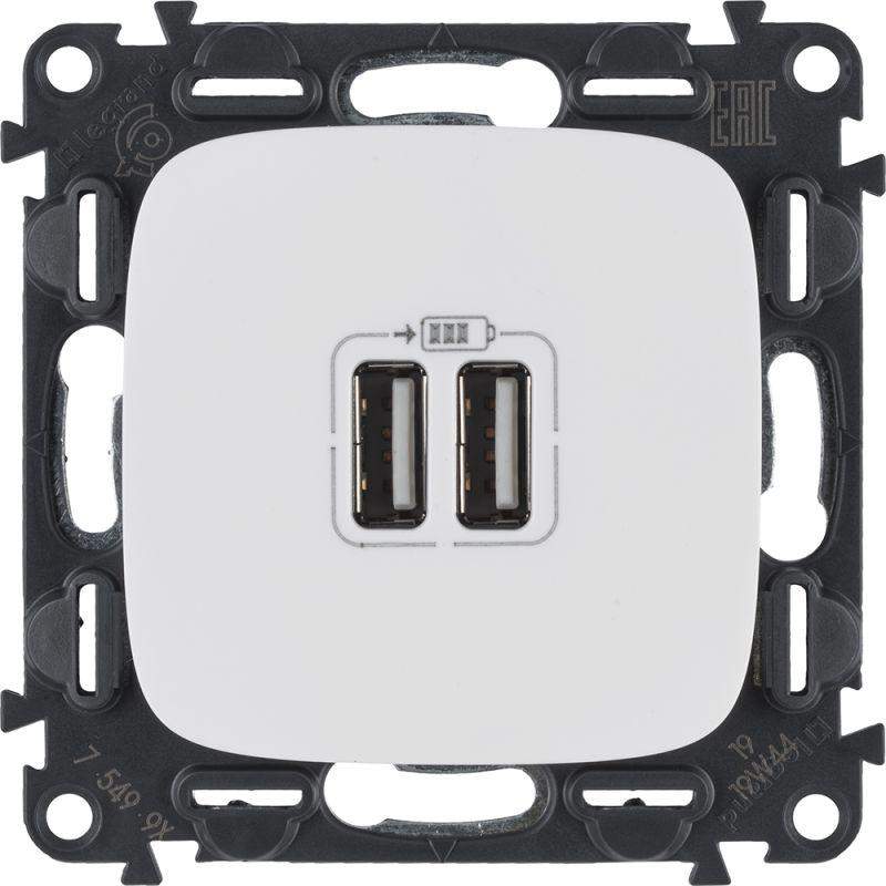 Устройство зарядное Valena Allure с 2-мя USB-разъемами 240В/5В 1500мА с лиц. панелью бел. Leg 754995