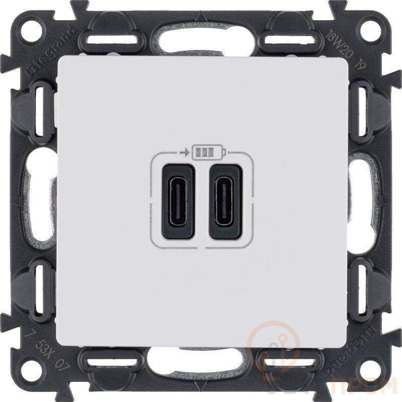 Устройство зарядное Valena Life с 2-мя USB-разъемами тип C-тип C 240В/5В 3000мА с лиц. панелью бел. Leg 753107