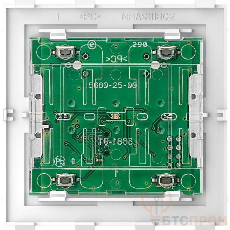 Модуль Schneider Electric Merten серии D-Life кнопочного выключателя Wiser, одноклавишный подключается к механизму с помощью интерфейса и дополняется клавишей соответствующей конструкции. Дистанционное управление и программирование осуществляют с помощью приложения Wiser Room. Клавиша заказывается отдельно.