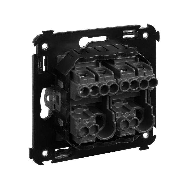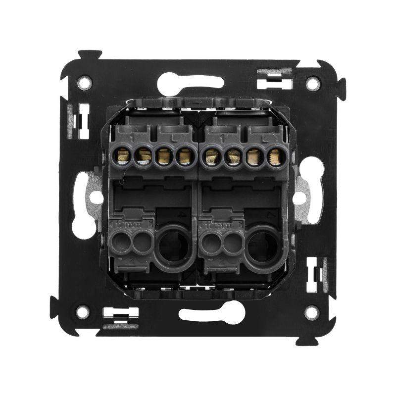 Кнопка двухклавишная. Назначение: для монтажа в подрозеточные коробки глубиной не менее 45 мм (код 59301). Используется для кратковременного включения источника питания. Характеристики: 2 модуля, диаметр отверстий для ввода кабелей – 3 мм (по 2 отверстия на одну клемму); винтовые зажимы; шаблон для зачистки кабеля – 11 мм; номинальный ток – 10 A; номинальное напряжение – 230 В. Фиксация производится в подрозеточные коробки при помощи каркаса с лапками (код 4400802) и саморезов. Цвет: "Черный матовый". Производитель оставляет за собой право вносить во внешний вид изделия изменения, которые не влияют на его функционал, безопасность и надежность.