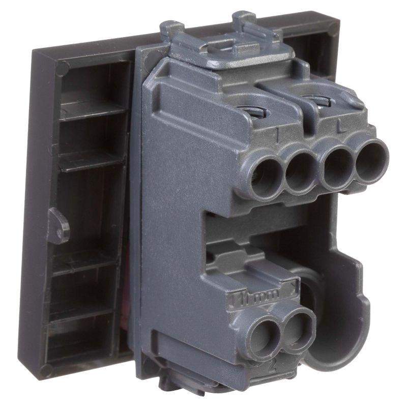 Кнопка модульная серии "Avanti". Предназначена для монтажа в систему пластиковых кабельных коробов "In-liner Front" и систему организации рабочих мест "Sotto" (в т.ч. кабель-каналы и короба "Aero") при помощи рамок-суппортов и каркасов "Avanti" (код 4400912 и т.д.). Используется для кратковременного включение источника питания энергией. Диаметр отверстий для ввода кабелей – 3 мм (по 2 отверстия на одну клемму). Винтовые зажимы. Шаблон для зачистки кабеля – 11 мм. Номинальный ток – 10 A. Номинальное напряжение – 230 В. Фиксация производится в подрозеточные коробки при помощи каркаса с лапками (код 4400802) и саморезов. 2 модуля. Цвет: "Черный матовый". Производитель оставляет за собой право вносить во внешний вид изделия изменения, которые не влияют на его функционал, безопасность и надежность.