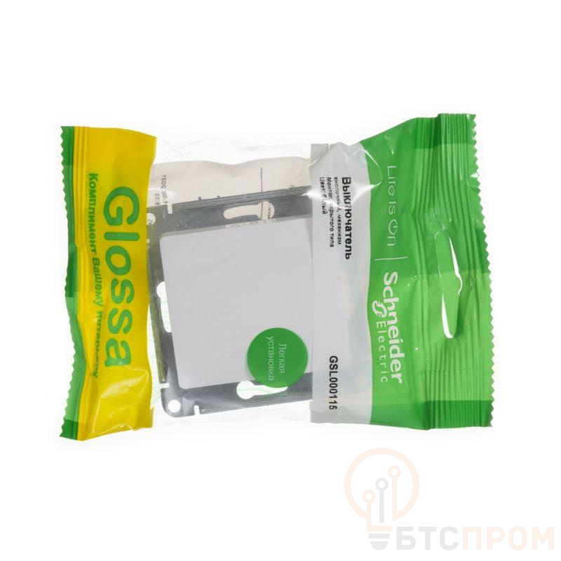 Механизм Systeme Electric (ранее Schneider Electric) серии Glossa (цвет белый) выключателя 1-клавишного с самовозвратом подходит для сетей 250 В, на ток 10 А. - Выполнен из материала PС+ASA, стойкого к УФ-излучению и появлению царапин. - Эргономичные клеммы расположены в два ряда: сверху и снизу.