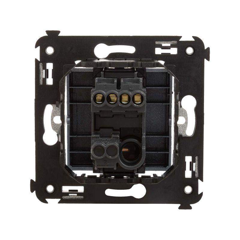 Кнопка одноклавишная. Назначение: для монтажа в подрозеточные коробки глубиной не менее 45 мм (код 59301). Используется в качестве кратковременного включения источника питания энергией. Характеристики: 2 модуля, диаметр отверстий для ввода кабелей – 3 мм (по 2 отверстия на одну клемму); винтовые зажимы; шаблон для зачистки кабеля – 11 мм; номинальный ток – 10 A; номинальное напряжение – 230 В; фиксация в подрозеточные коробки при помощи каркаса с лапками (код 4400802) и саморезов. Цвет: "Закаленная сталь". Производитель оставляет за собой право вносить во внешний вид изделия изменения, которые не влияют на его функционал, безопасность и надежность.