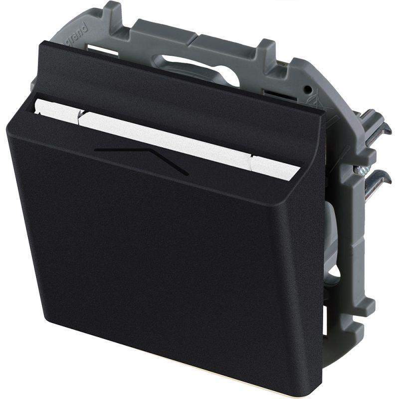 Переключатель карточный Inspiria для скрытого монтажа, для гостиничных номеров, цвет "Антрацит", с подсветкой, номинальный ток 6 А, напряжение ~250В. Предназначен для установки в гостиничных номерах и используется для прямого или косвенного (через контактор или реле) управления электропитанием в номере - например, линиями освещения, розеточными группами, феном и т.д.