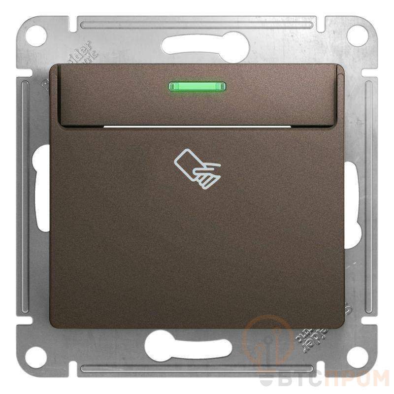 Механизм Glossa (цвет шоколад) выключателя карточного подходит для сетей 250 В, на ток 10 А. - Идеально подходит для гостиниц и отелей. - Выполнен из материала PС+ASA, стойкого к УФ-излучению и появлению царапин.