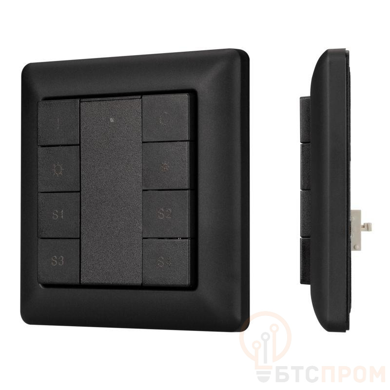 Встраиваемая кнопочная черная пластиковая панель для работы по протоколу DALI. Включение/выключение, диммирование, вызов и сохранение 4-х сцен в 1 группе. Установка номера группы и номера первой сцены выполняется переключателями на корпусе. Питание от шины DALI (4 мА). Стандартная рамка входит в комплект поставки.