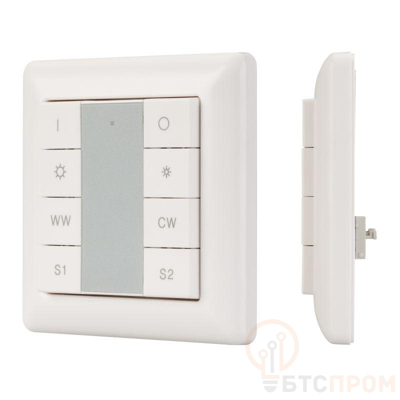 Встраиваемая кнопочная белая пластиковая панель для работы по протоколу DALI. Включение/выключение, диммирование и управления цветом свечения (MIX, CCT, HCL) 1 группы. Вызов и сохранение 2-х сцен. Поддержка команд DT8, при адресации 2 каналов (CW+WW) на 1 адрес. Возможно широковещательное управление. Установка номера группы и номера первой сцены выполняется переключателями на корпусе. Питание от шины DALI (4 мА). Стандартная рамка входит в комплект поставки.