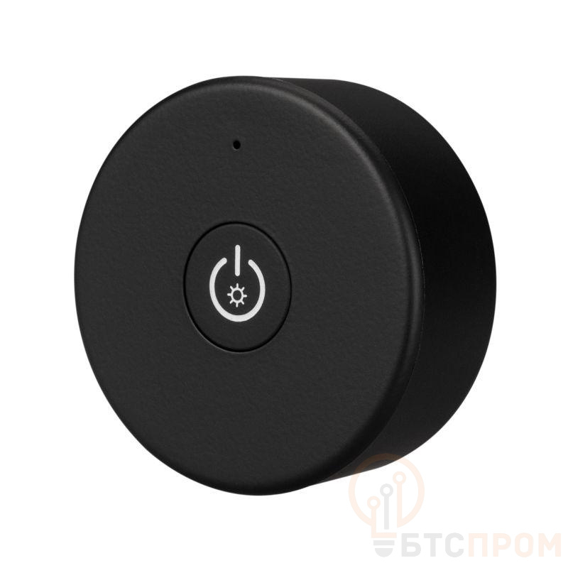 Накладная кнопочная миниатюрная панель 2.4 ГГц, цвет чёрный. Материал - пластик. Для управления одноцветными источниками света (ШИМ), 1 зона управления. Питание/рабочее напряжение 3V от батареи CR2032. Габариты 43х43х17 мм. Панель совместима с диммерами серии SMART.