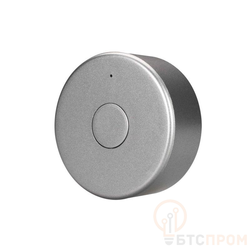 Накладная кнопочная миниатюрная панель 2.4 ГГц, цвет серебро. Материал - пластик. Для управления одноцветными источниками света (ШИМ), 1 зона управления. Питание/рабочее напряжение 3V от батареи CR2032. Габариты 43х43х17 мм. Панель совместима с диммерами серии SMART.