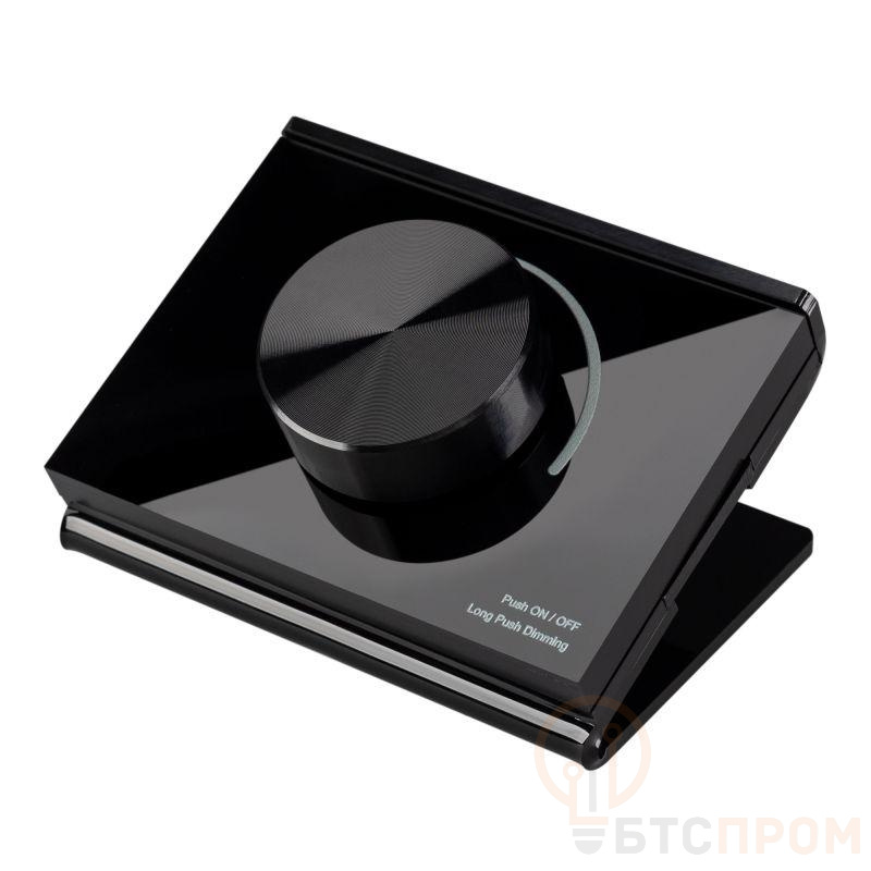 Настольная роторная стеклянная панель 2.4 ГГц, цвет чёрный. Для управления одноцветными источниками света (ШИМ). Управление яркостью с помощью роторного регулятора. Питание/рабочее напряжение 3VDC от батарейки CR2032. Габариты 91х72х52 мм. Панель совместима с диммерами и пультами серии SMART.