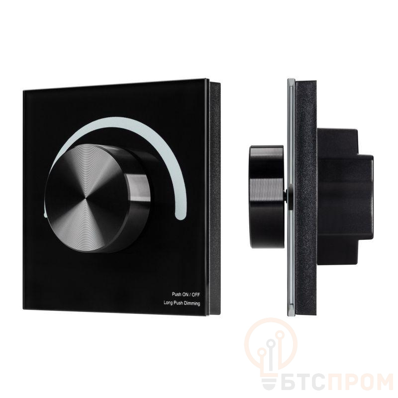 Встраиваемая роторная стеклянная панель 2.4 ГГц, цвет чёрный. Для управления одноцветными источниками света (ШИМ). Управление яркостью с помощью роторного регулятора. Работает в режиме master/slave и может выполнять функцию независимого контроллера. Питание/рабочее напряжение 12-24VDC, 4 параллельных выхода по 3А максимальной нагрузки на канал, максимальная суммарная мощность 144-288W. Габариты 86х86х50 мм. Панель совместима с диммерами серии SMART. Возможно управление пультами (см. совместимые товары) или другими панелями.