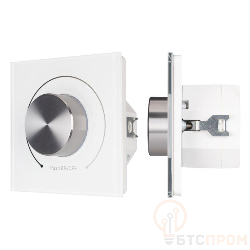 Встраиваемая роторная панель с выходом DALI. Установки адреса нет (Broadcast). Питание 100-240 VAC, встроенный источник тока для DALI-линии (выход 125 mA). До 32 устройств DALI. Настраиваемый режим ограничения минимальной яркости.