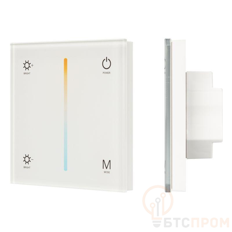 Встраиваемая сенсорная стеклянная панель 2.4 ГГц, цвет белый. Для управления температурой свечения (MIX/CCT) и яркостью с помощью сенсорной полосы. Работает в режиме master/slave и может выполнять функцию независимого контроллера. Питание/рабочее напряжение 12-24VDC, максимальный ток 3A на канал, 4 канала, максимальная мощность 144-288W. Габариты 86х86х35 мм. Панель совместима с контроллерами серии SMART.