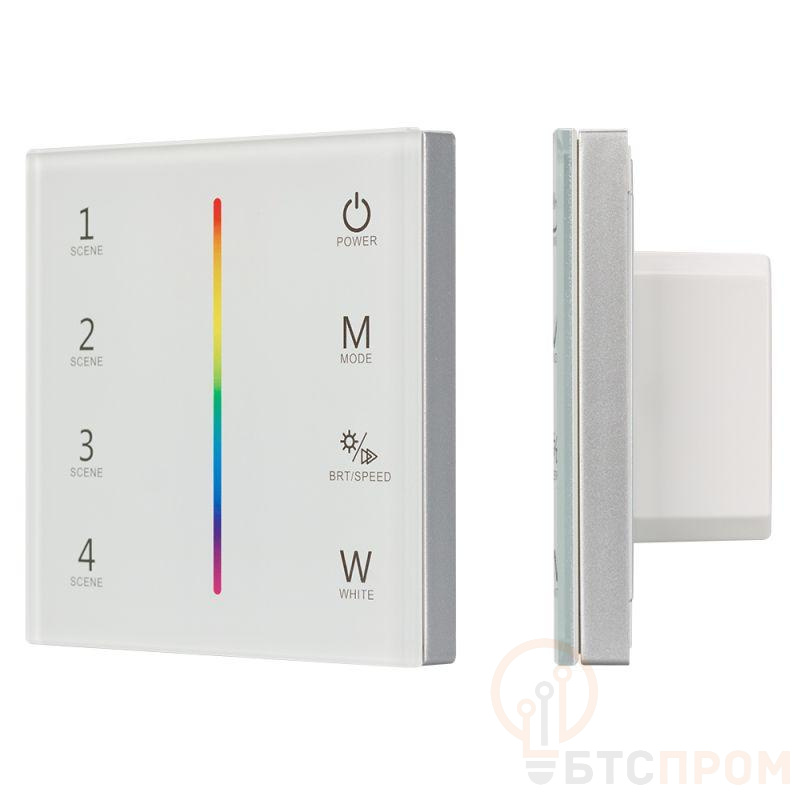 Встраиваемая сенсорная стеклянная панель 2.4 ГГц, цвет белый. Для управления светодиодными RGBW источниками света (ШИМ). Управление цветом с помощью сенсорной полосы. Работает в режиме master/slave и может выполнять функцию независимого контроллера. Питание/рабочее напряжение 12-24VDC, максимальный ток 3A на канал, 4 канала, максимальная мощность 144-288W. Габариты 86х86х37 мм. Панель совместима с пультами и контроллерами серии SMART.
