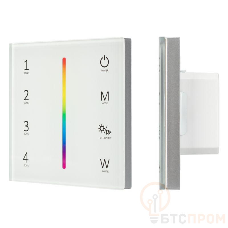 Встраиваемая сенсорная стеклянная панель 2.4 ГГц, цвет белый. Для управления RGBW источниками света с помощью сенсорной полосы. Питание/рабочее напряжение AC 100-240V, 4 зоны управления. Функция управления DMX512 устройствами. Габариты 86х86х35 мм. Панель совместима с контроллерами и пультами серии SMART.