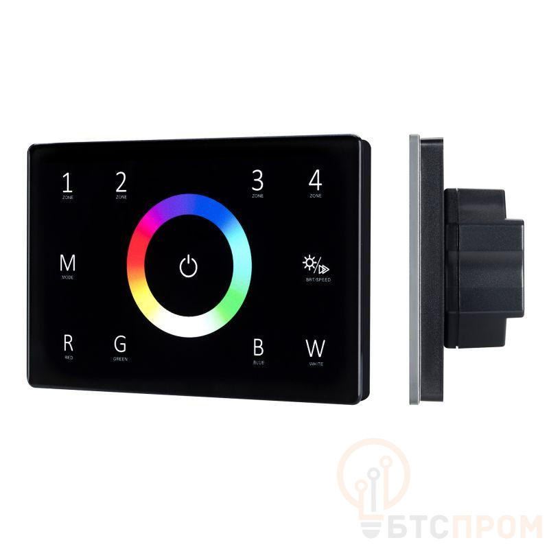 Встраиваемая сенсорная панель 2.4 ГГц, цвет чёрный. Итальянский стандарт. Материал - стекло. Для управления RGBW источниками света (ШИМ), 4 зоны управления. Функция управления DMX512 устройствами. Питание/рабочее напряжение AC 85-265V. Габариты 120х80х37 мм, устанавливается в стандартный подрозетник. Панель совместима с контроллерами серии SMART.