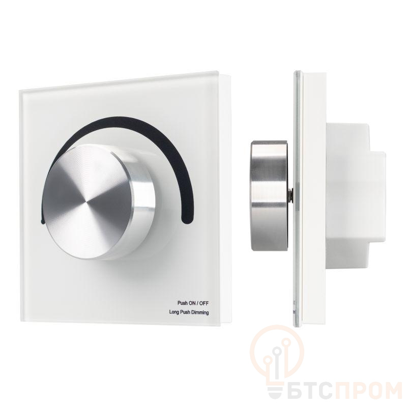Встраиваемая роторная панель 2.4 ГГц, цвет белый. Материал - стекло/пластик. Для управления одноцветными источниками света (ШИМ). Управление яркостью с помощью роторного вращателя. Питание/рабочее напряжение 3VDC от батарейки CR2032. Габариты 86х86х48 мм. Предназначена для установки в стандартный подрозетник. Панель совместима с диммерами серии SMART.