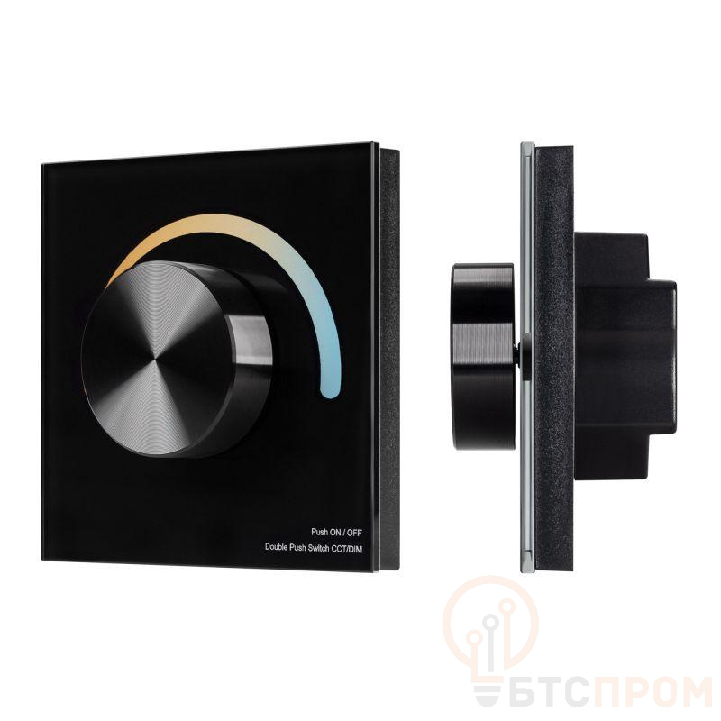 Встраиваемая роторная панель 2.4 ГГц, цвет чёрный. Материал - стекло/пластик. Для управления мультибелыми источниками света (ШИМ). Управление яркостью с помощью роторного вращателя. Питание/рабочее напряжение 3VDC от батарейки CR2032. Габариты 86х86х50 мм. Предназначена для установки в стандартный подрозетник. Панель совместима с контроллерами серии SMART.