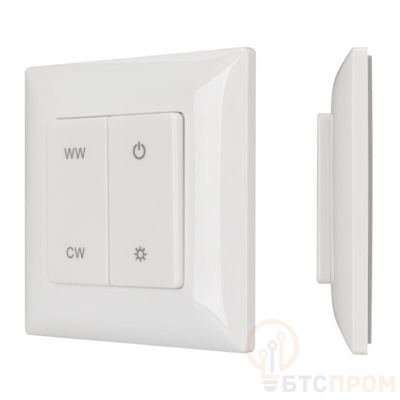 Накладная кнопочная панель 2.4 ГГц, цвет белый. Материал - пластик. Для управления мультибелыми (MIX) источниками света (ШИМ), 1 зона управления. Питание/рабочее напряжение 3VDC от батарейки CR2032. Габариты 86х86х14 мм. Совместима с контроллерами SMART.