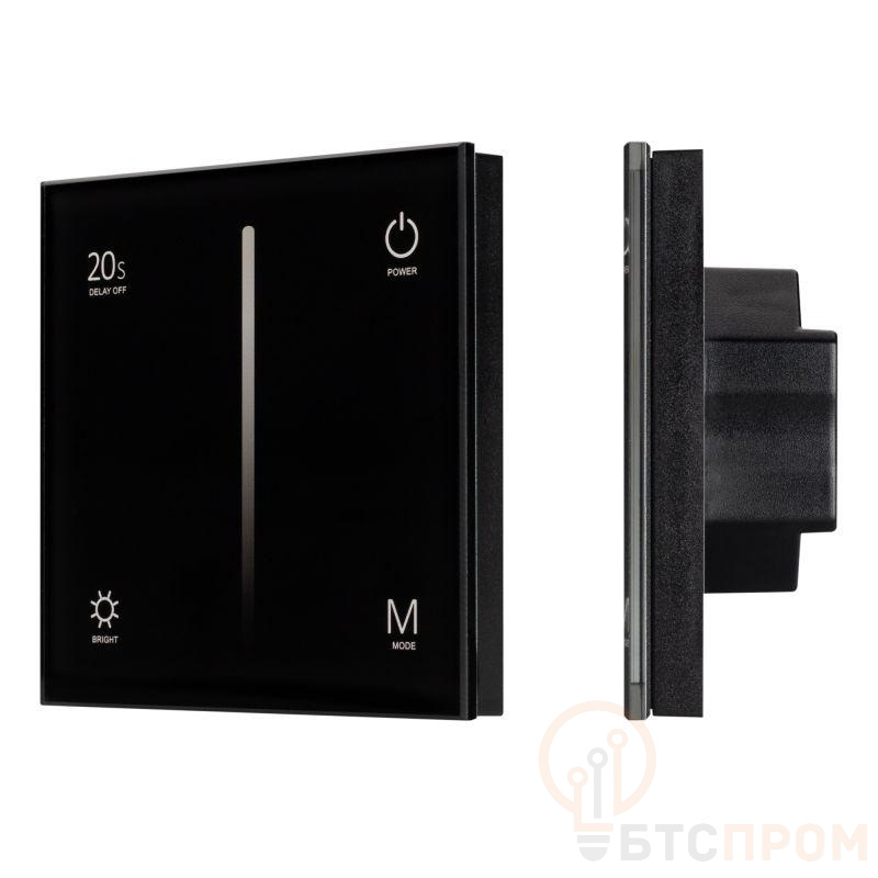 Встраиваемая сенсорная стеклянная панель 2.4 ГГц, цвет чёрный. Для управления одноцветными источниками света (ШИМ). Управление яркостью с помощью сенсорной полосы. Работает в режиме master/slave и может выполнять функцию независимого контроллера. Питание/рабочее напряжение 12-24VDC, 4 параллельных канала по 3А максимальной нагрузки на канал, максимальная суммарная мощность 144-288W. Габариты 86х86х33 мм. Панель совместима с диммерами серии SMART. Возможно управление пультами (см. совместимые товары) или другими панелями.