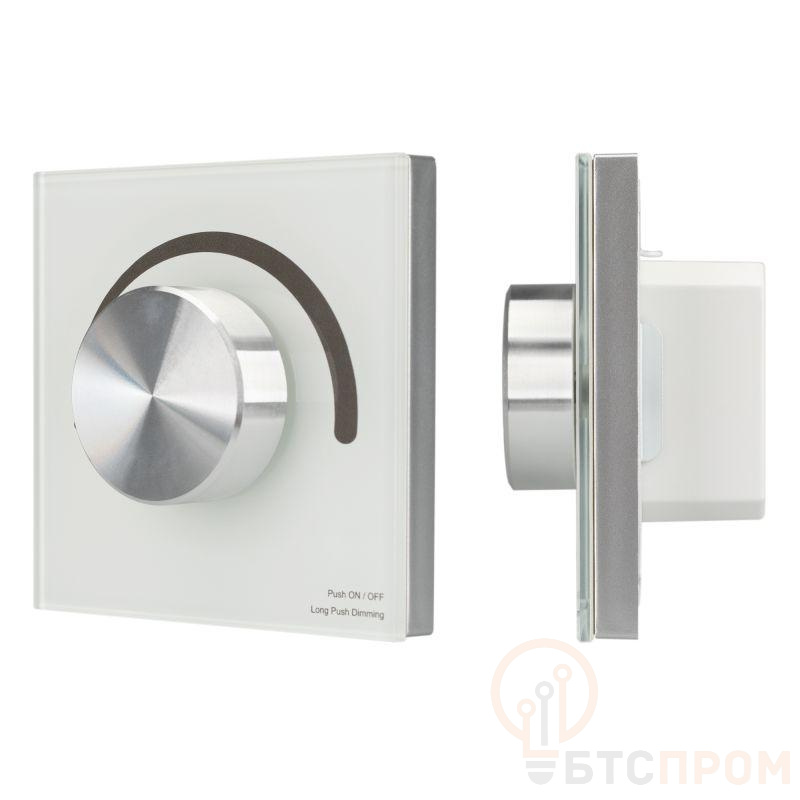 Встраиваемая роторная панель RF 2.4 ГГц, цвет белый. Материал - стекло. Выходной сигнал 0/1-10V. Управление яркостью с помощью роторного вращателя. Работает в режиме master/slave, 1 зона. Питание 230V, входное напряжение 100-240VAC. Габариты 86х86х35 мм. Панель совместима с 0/1-10V(dip-переключатель) контроллерами и пультами серии SMART.