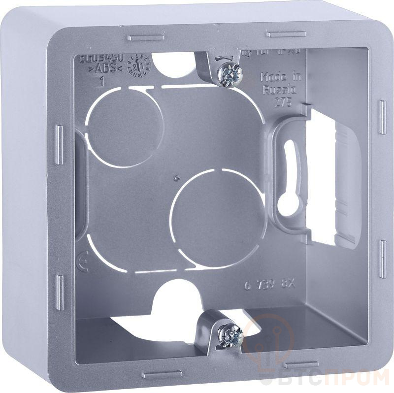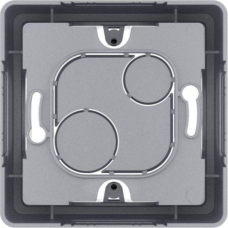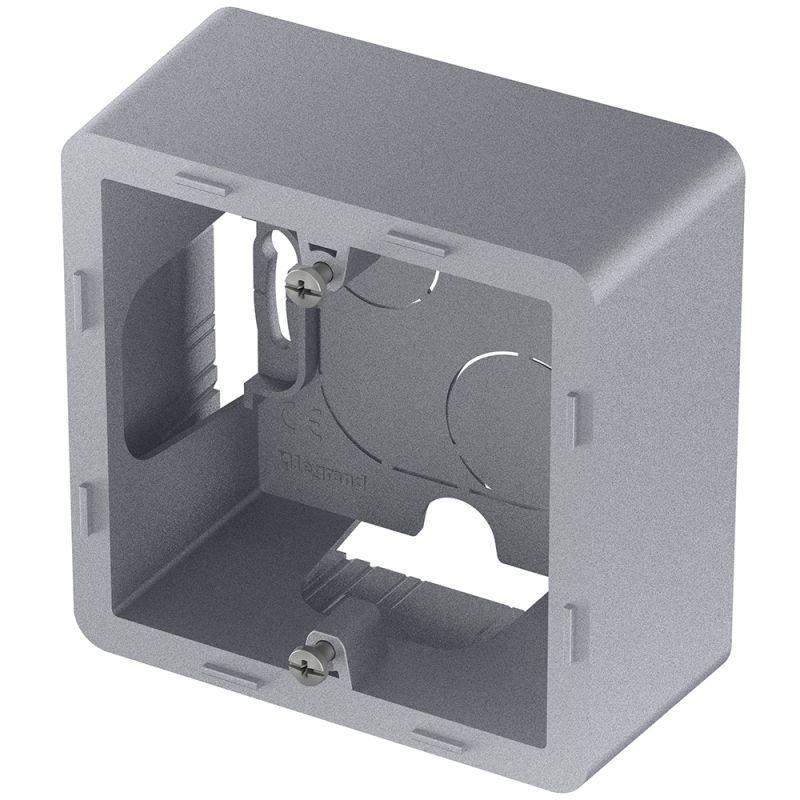 Коробка для накладного монтажа Inspiria, 1 пост, цвет "Алюминий". Коробка предназначена для накладного монтажа механизмов серии Inspiria и позволяет установить 1 механизм из данной коллекции. Конструкция коробки позволяет подключить провода наиболее удобным способом.