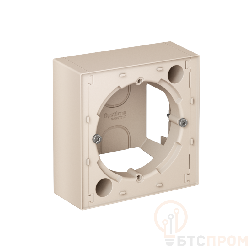 Коробка наружного монтажа Systeme Electric (ранее Schneider Electric) серии AtlasDesign в бежевом цвете . - Позволяет установить любую функцию скрытого монтажа на стену (как изделие открытого монтажа). - Благодаря специальным соединителям, входящим в комплект изделия, несколько коробок можно соединить между собой. - Лицевые детали из качественного ABS-пластика, устойчивого к царапинам и УФ-излучению.