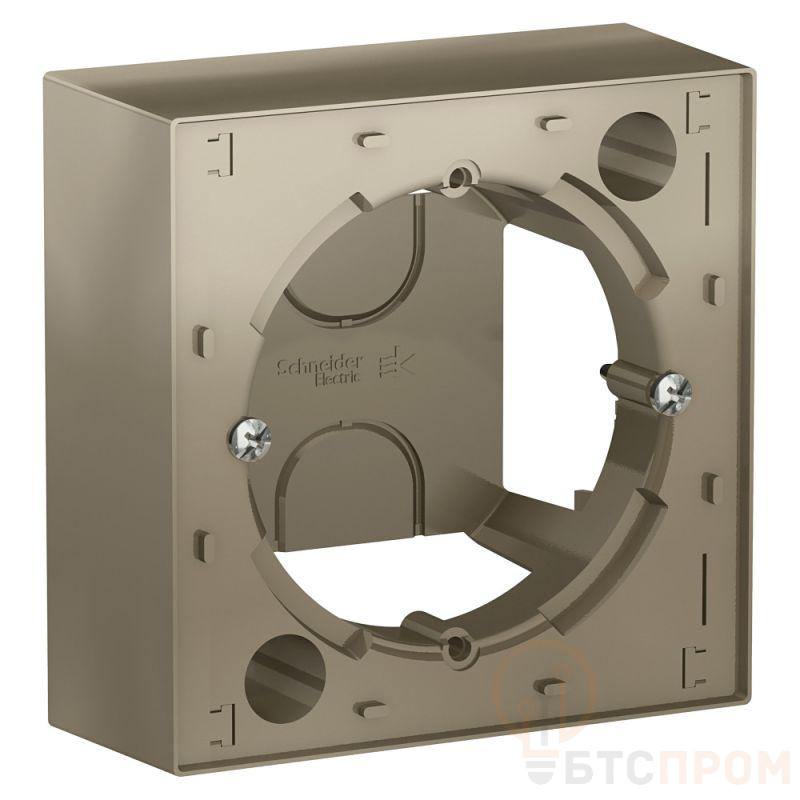 Коробка Systeme Electric (ранее Schneider Electric) серии AtlasDesign в цвете шампань наружного монтажа. - Позволяет установить любую функцию скрытого монтажа на стену (как изделие открытого монтажа). - Благодаря специальным соединителям, входящим в комплект изделия, несколько коробок можно соединить между собой. - Лицевые детали из качественного ABS-пластика, устойчивого к царапинам и УФ-излучению.
