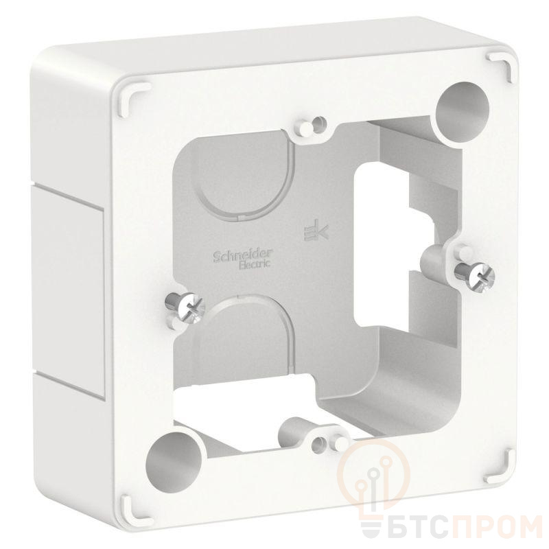 Коробка Systeme Electric (ранее Schneider Electric) BLANCA (белый) подъемная, однопостовая предназначена для наружного монтажа электроустановочных изделий серии Blanca. Коробка рассчитана на установку розетки до 32 А. Имеется возможность соединения нескольких коробок. Размеры коробки: 86*86*34 мм. Корпус изделия выполнен из ABS-пластика.