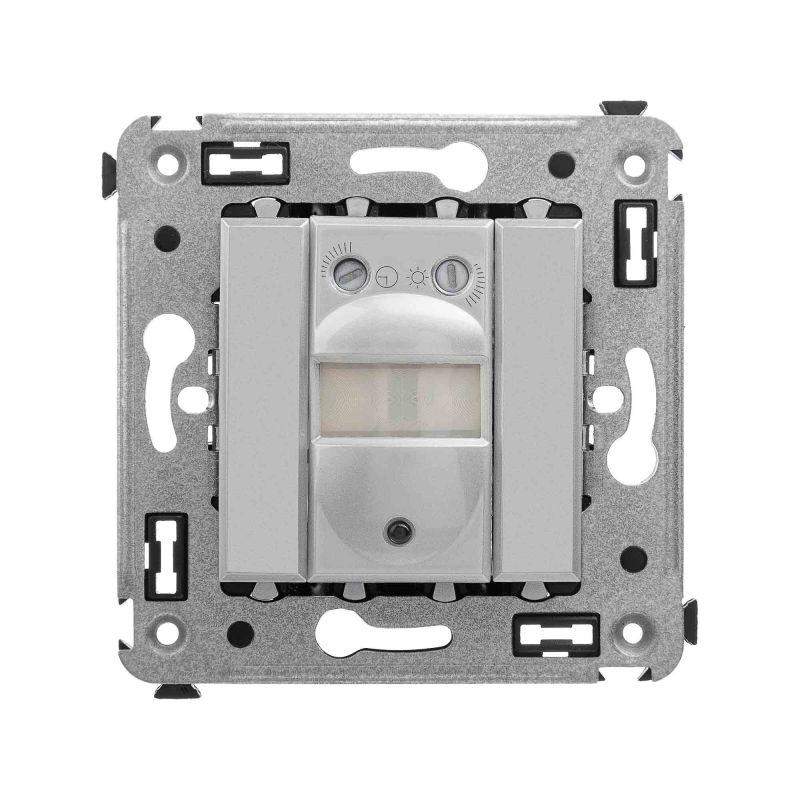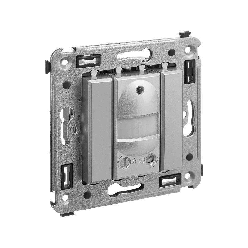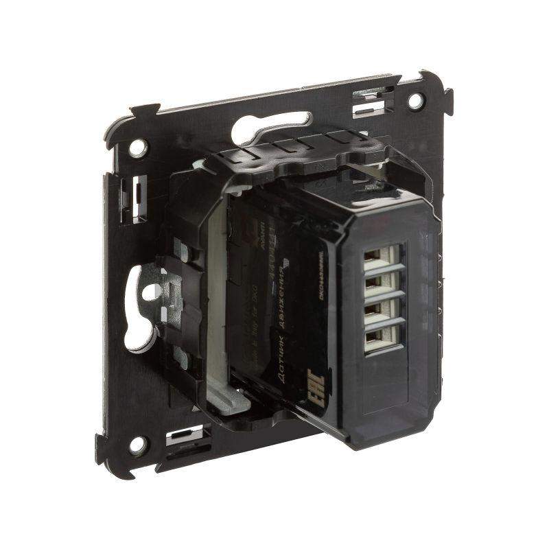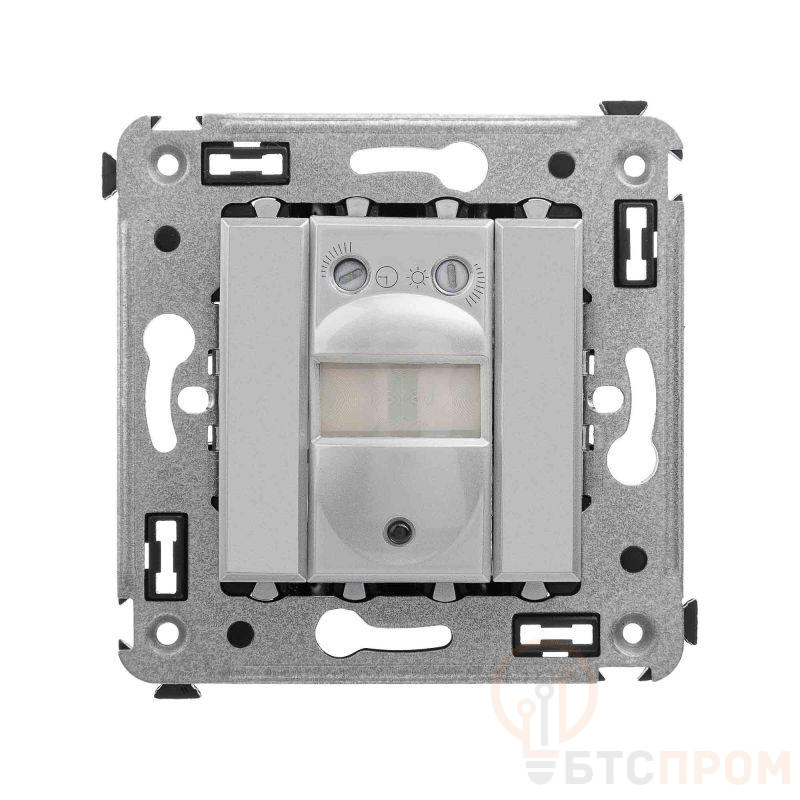 Датчик движения. Назначение: для монтажа в подрозеточные коробки глубиной не менее 45 мм (код 59301). Используется для автоматического включения/выключения света. Характеристики: диаметр отверстий для ввода кабелей – 3 мм; винтовые зажимы; шаблон для зачистки кабеля – 11 мм; расстояние обнаружения – от 2 до 12 м; угол охвата – 150°; время задержки отключения – от 10 с до 7 мин.; настройка светочувствительности датчика; настройка порога освещенности; фиксация в подрозеточные коробки глубиной не менее 45 мм при помощи каркаса с лапками (код 4400802) и саморезов. Цвет: "Закаленная сталь". Производитель оставляет за собой право вносить во внешний вид изделия изменения, которые не влияют на его функционал, безопасность и надежность.