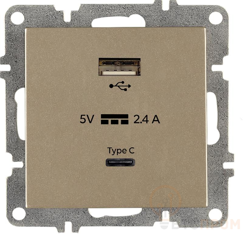 Корпус механизма выполнен из высококачественного термостойкого пластика, а лицевая панель — из прочного сплава с покрытием «Титан», отличающимся повышенной износостойкостью и стильным металлическим шиком. Устройство рассчитано на общий ток до 2А, что обеспечивает оптимальную скорость зарядки. Розетка монтируется в стандартный подрозетник и предназначена для скрытой проводки.
